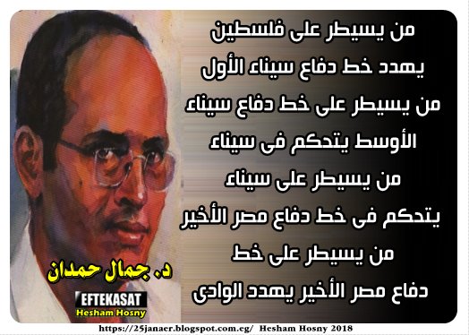 جمال حمدان : من يسيطر على فلسطين يهدد خط دفاع سيناء الأول من يسيطر على خط دفاع سيناء الأوسط يتحكم فى سيناء